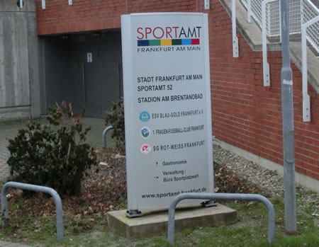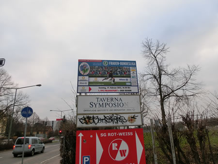 ■上が1.FFCフランクフルトの看板、下がロット・ヴァイス・フランクフルトの看板ですね。こういう共同のグラウンドでは、片方の存在感が激薄なことも多いのですが、ここでは同等の扱いがされているようです。