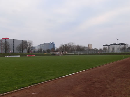 2013年2月12日に、スタジアムのみ訪問このスタジアムは、ドイツ女子ブンデスリーガの1.FFCフランクフルトとドイツ6部のロット・ヴァイス・フランクフルトが使用しているスタジアムになります。ちょうど、訪問した際には少年チームが練習をしていました。フランクフルト中央駅からの場合は乗り換えが必要ですが、本数も多い路線ですし、複雑ではないので特に最寄駅までは問題なく行けると思います。一つ手前のIndustriehof駅からでも大体同じ距離くらいです。このスタジアムに行かれる際に注意していただきたいのは、ナビなどで1.FFCフランクフルトで検索して指した場所に行かないこと。ここは、スタジアムではありません。グラウンド名を直接入力するか、地図で大体の道を把握しておくことをお勧めします。はい、ブクメ、大失敗しましてアクセス的に問題ないこの場所にたどり着くのに予想外の時間を要してしまいましたw