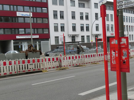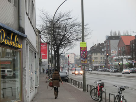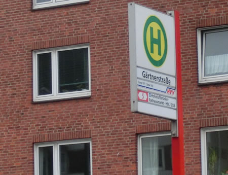 ■この通りは、5番のバスが走っています。この路線は、ハンブルク中央駅のバスターミナルともつながっているので、電車を使わなくても簡単にスタジアムアクセスもできそうです。