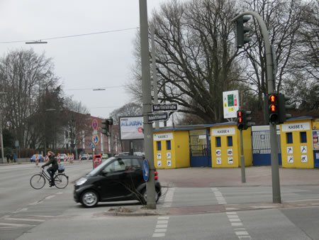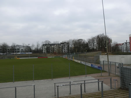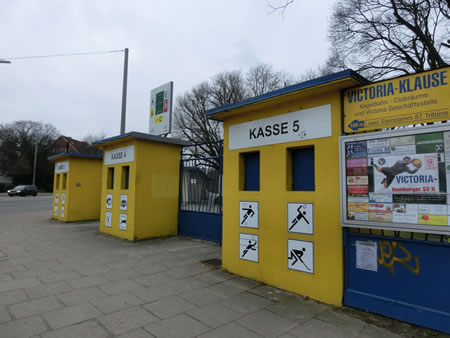 | 2013年2月17日に、スタジアムを訪問しました。ひとつ前に訪問した、ザンクト・パウリのホームスタジアムの最寄駅ザンクト・パウリも通るU3のホーエルフトブリュッケ駅最寄りのスタジアムです。一本道ですが、距離的には1.3キロほどあります。しかしながら、色々な店が立ち並ぶ通りですので、そこまで遠くは感じませんでした。くどいようですが、初めて来た場合はバスがあっても出来る限り、最寄駅から徒歩で歩いていくということで、通りを歩きつつ、ドイツのバスの便利さをこの旅で知ってしまったために、通るバスをチェックする習慣が付いてしまったというか、その中でもスタジアム方面に向かう5番のバスの目的地にHbf/ZOBという文字があったのが気になっていたんですよね。このHbf/ZOBと言うのは、その町の中央駅周辺のバスターミナルを指すのですが、要するに鉄道ではなく、バス路線で中央駅のバスターミナルからアクセス可能と言うことなんですね。と言うことで、今回は歩きましたが、また来る機会があれば、間違えなく次はバスを使います。 | |