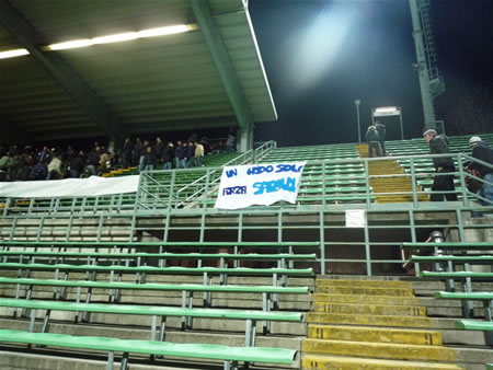 事前に調べていなかったもののアルビノレッフェと言うチームはセリエBの常連チームで2007-2008シーズンは昇格争いに絡み、最終的には4位でプレーオフの決勝まで進みながらレッチェに敗れて昇格がならなかったというチーム。セリエBでどっしりと腰をすえて戦えて昇格争いに絡めるというチームでしたが、アルビノレッフェのクルヴァは非常に温かい空気が流れていました。