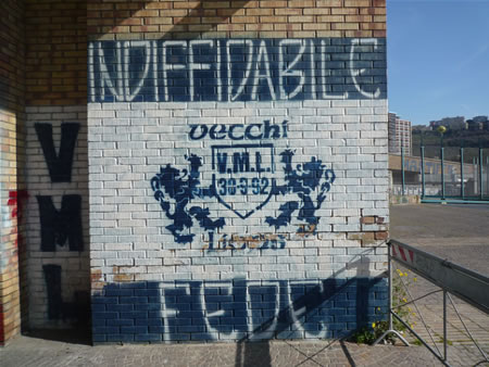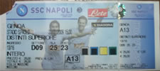 | ナポリに滞在したのでスタジアムに行ってみたという感じで周りの店もお休み、下にある写真のようにオフィシャルショップも休みでシャッターが閉まっていました。 最寄り駅のカンピ・フレグレイ駅ですが、地下鉄で来てもFS線で来ても同じ地上駅に停まるようです。電車自体がFS線のものなので最初地下鉄駅で乗る際には本当に乗っていいのかビクビクしながら乗りましたw地下鉄として乗ったのでUnico Napoli(地下鉄、バス、フニコラーレの共通切符)の1日券で乗りましたが、FS線は通常駅から駅までの料金になるかもしれないのでよくわかりませんが、イタリアの鉄道は謎が多いです。 ナポリのウルトラスではルパンをモチーフにしたものがあり、街中ではルパンの絵柄の入ったマフラーやTシャツ。下に写真でも載せましたがシャッターにルパンの絵が描いてあったりします。愛着がわきますね。 スタディオ・サンパオロ付近は隣接している大学と他にも近くに学校があるため訪問した日は平日だったので学生が多い印象がありました。スタジアムの方に行ったら空いている入り口があったので勝手に入って写真とか撮っていたら、開放していたというわけではなかったらしく、スタジアム管理の方らしいおじさんに入っちゃダメだよみたいなことを言われ、丁重に追い出されてしまいましたw このページで掲載しているチケットは拾ったものです(笑) | |