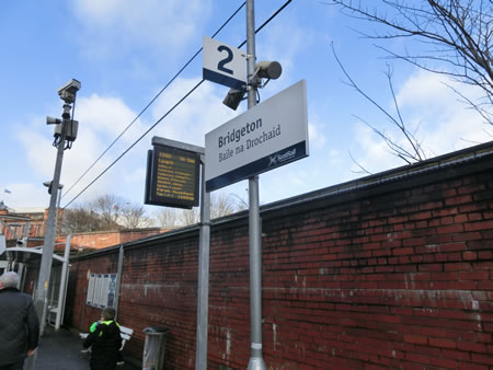 ■はい、ブリッジトン駅に到着です。中央駅からの所要時間は4分なので、あっという間です。目の前のおじいさんと孫の2人組は、セルティック・パークに向かうようでしたが、その他は、そもそもここで降りる人がいませんでした。試合まで1時間半くらい前だったと思います。