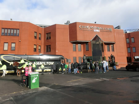 ■正面の入口付近に到着した時に、人が集まっていると思ったら、ちょうど、セルティックの選手バスが到着したところでした。