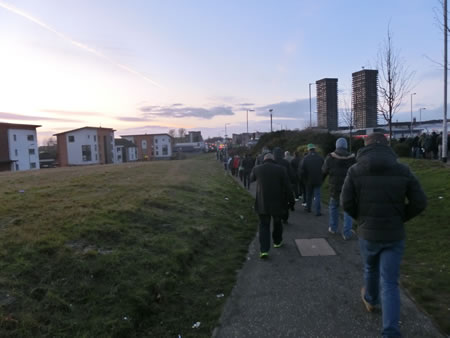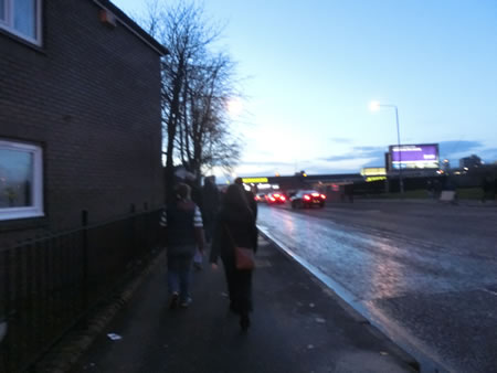 ■試合終了後、家路に向かう人々。この方向に4,50分歩き続けると、グラスゴー中央駅辺りまでたどり着きます。