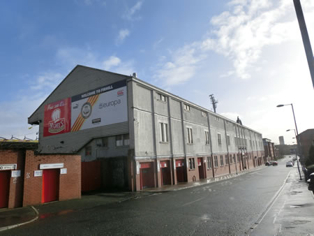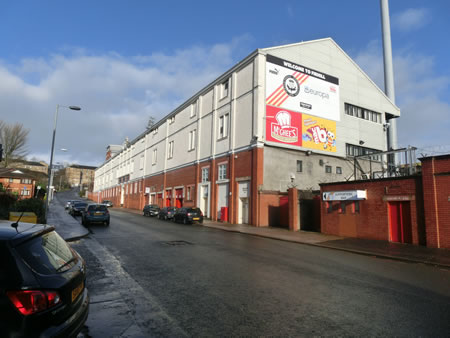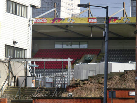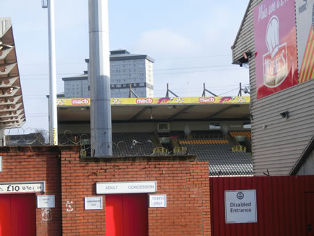 | 2014年2月にスタジアムを訪問しました。グラスゴーにあるのは、セルティックとレンジャーズの2つと、代表で使用されるハムデンパークで計3つかと思っていたのですが、調べてみたらグラスゴーにスコットランドプレミアリーグのチームのスタジアムがあることを知り、午後からセルティックの試合を観戦する予定の2月2日に、足を運びました。最寄駅からは、やや距離はあるものの道自体は長閑でわかりやすいですので、のんびり歩く分には、それほど苦にならないと思います。 2月1日に、パーティック・ジスルホームの試合があることを調べてわかっていたので、同日開催で最初に足を運んでいたレンジャーズのチケットが当日取れなければ、こちらの試合を観戦しようと思っていたのですが、レンジャーズの試合のチケットが買え、観戦できたので、こちらは翌日の2日にスタジアム訪問のみとなりました。 外から見る限りは、小規模なスタジアムにも見えますが、1万人程度は収容できるスタジアムのようです。 | |