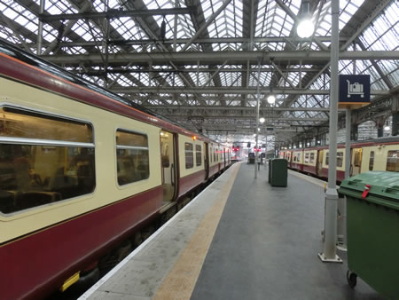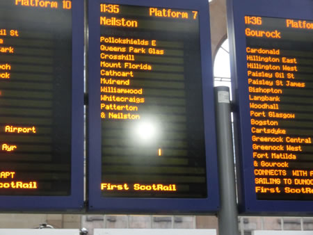 ■7番線から出発の電車です。4駅目にMount Floridaとありますね。基本的には、このホームから出発しますが、変更が多いのも英国なので注意が必要です。