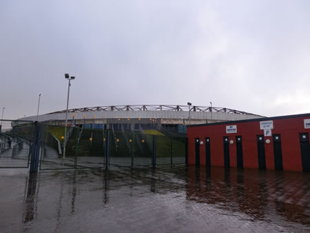 | 2014年2月にスタジアムを訪問しました。今回、ハムデンパークへの歩き方を初めて作成していますが、このスタジアム自体は、実は10年以上前になりますが、訪れてワールドカップ予選のスコットランド代表vsサンマリノ代表の試合を観戦したことがあります。代表戦のあったその時と、試合のない、しかも天気がかなり荒れている今回だったので、なつかしさは感じつつも、人の少なさなど含めて、印象が全く違っていたのが逆に印象的でした。 当時は、欧州の一人旅を初めてした時だったので、見えるものの新鮮さなども半端なかったと思いますが、今は、変な意味で慣れてしまっているのかな~とも思います。スタジアムのアクセスは、かなり良いスタジアムの一つになります。基本的には、多くの方がここでの試合に足を運ぶ時には、スコットランド中央駅などを拠点に動くと思いますが、15分に1本くらい電車は出ていますし、乗車時間も10分程度になりますので、行きに関しては問題ないでしょう。ただ、5万人規模収容のスタジアムなので、大きな大会などに足を運ぶと電車で帰るのはかなり大変です。スタジアムまでの道のりでも触れましたが、グラスゴー中央駅まで4キロ程度なので、体力的に自身のある方は、結果的に電車に乗るまでの時間がかかることを考えると、歩いてしまっても、所要時間はあまり変わらないか、電車より早く着く可能性もあります(その分、疲労はたまりますがw) 今回、歩き方を作成するうえで、調べなおして初めて知ったのですが、基本的に国立競技場のように代表戦メインで使われるスタジアムと思っていたのですが、4部リーグ相当のスコットランドリーグ2に所属するクイーンズ・パークというチームの本拠地として、ハムデンパークは利用されているようです。 ちょうど、足を運んだ2014年2月現在は、今年7月~8月にかけて開催される、コモンウェルスゲームに向けて、再開発が行われているため、クイーンズ・パークのホームゲームは、別のスタジアムが利用されている状況とのことでした。 | |