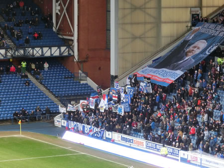 ■ゴール裏の一角が、レンジャーズのコアサポーターゾーンになってました。