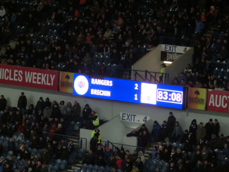 ■試合は思わぬ接戦になります。スコアもこのまま2-1でレンジャーズ勝利で終わったのですが、レンジャーズサポーターは、不甲斐ない試合展開にお怒りの様子でした。