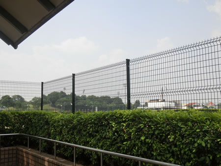 ■駅付近からでも金網越しに奥の方に照明塔が見えます。