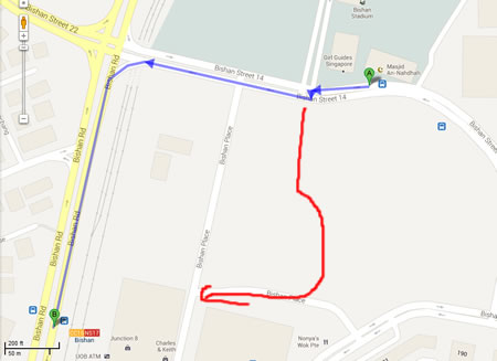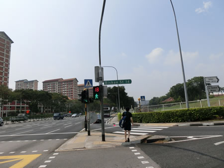 ■道沿いに歩いていくと、Bishan St 14の交差点に出ますので、ここで右折します。