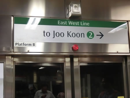 ■MRTの東西線は、チャンギ空港にもつながる路線のため、最も利用したことがある方が多い路線だと思います。アルビレックス新潟シンガポールのホームスタジアムのチャイニーズ・ガーデン駅に向かう場合は、上記のようにto Joo Koon方面の電車に乗りましょう。