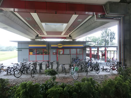 ■駅の出口には、Cheersというコンビニがあります。スタジアムは、この写真からですと右奥の方にあります。方向としては、高架下の歩道をこの方向に向かっていきます。