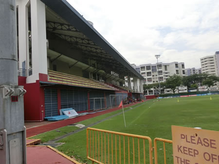 ■シンガポールでは、規模の大きいJalan Besar Stadium以外は、基本的にスポーツ複合施設の一つとしてサッカー場が用意されているケースが多く、会員に対して解放されていたりするのでしょうか、その関係で試合が無い日でも内部に自由に入れるところが多く感じました。そして、複合施設では試合のない日はプールで泳いでいる人が多くいました。