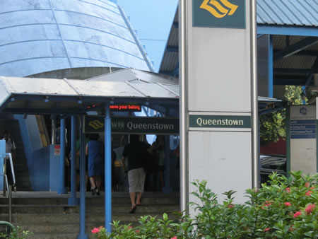 ■クイーンズタウン駅の入り口はこのようになっています。MRTは、中心部は地下で郊外は高架駅になっています。