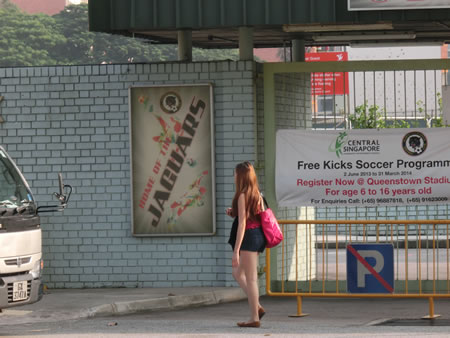 | 2013年6月にスタジアムを訪問しました。19:30から、Jalan Besar Stadiumに移動して試合観戦する関係で、時間がなくなり、本来はChoa Chu Kang駅最寄りのウォリアーズFCのチョア・チュ・カンスタジアムも訪問しようと思ったのですが、駅からの移動がスムーズではなさそうだったため、最もアクセスが簡単そうな、クイーンズ・タウン駅最寄りのタンジョン・パガー・ユナイテッドのクイーンズタウン・スタジアムを訪問して、移動することにしました。NS線でJurong East駅乗り換えでEW線に乗り継いで、クイーンズタウン駅に向かうと電車からスタジアムが見えます。立地的に迷い用のないスタジアム。 さすがの方向音痴でもここは問題なしでした。 チーム名の正式名称となるタンジョン・パガー・ユナイテッド(Tanjong Pagar United FC)という表記はスタジアムにはあまりなく、愛称のジャガーズ(Juguars)と言う文字の方での表記だらけでした。 このスタジアムも陸上トラックがあり、開放されていて、ランニングをしている方がいました。のどかな夕方の風景と言った感じです。スタジアム周辺は、あまり店などはなく住宅街の中のスタジアムという印象でした。 | |