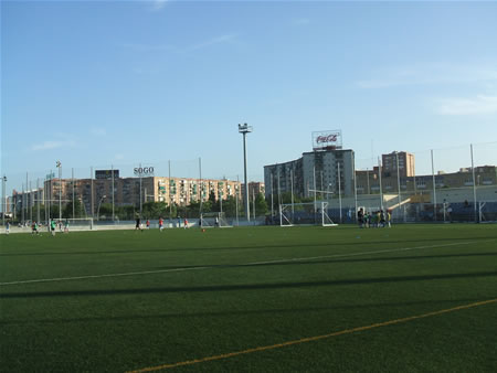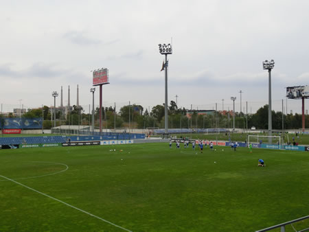 | 2010年9月の浦和レッズJrユースのスペイン遠征の際にエスパニョールJrとの練習試合を見るためにエスパニョールBチームのホームスタジアムであるシウダ・デポルティーヴァ・デル・エスパニョールを訪問しました。スタジアムとサブグラウンドがあり、浦和レッズJrとエスパニョールJrの練習試合はサブグラウンドで行われました。サブグラウンドは下部組織が練習に使用しているとのこと。 バルセロナ市街からは少し離れた場所になり、駅周辺は人が少なく閑散としていて若干治安が悪そうな雰囲気もありました。比較的駅からのアクセスは良く、事前に大まかな道順を聞いていたので迷わずに辿り着くことができました。 | |