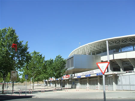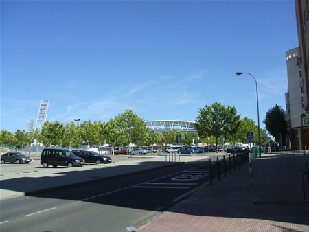 どのくらい時間がかかるのか、大まかに計算してみましたがチャマルティン駅から最寄り駅のロス・エスパルタレス駅まで乗り換えは比較的スムーズでしたが合計で45分くらいかかりました。 出口は2箇所ありますが、どちらからでても同じ歩道内に出ます。歩道横にアパートが立ち並んでおり、そこの狭い道を抜けていくとスタジアムが見えます。 スタジアムは小さくリーガエスパニョーラで戦っているチームとは思えない規模に感じます。すぐ近くにショッピングモールがあり、カルフール(スーパーマーケット)もそこに入っているので買い物には困らないと思います。 | |