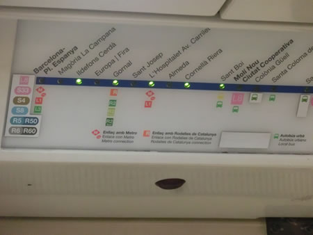 ■聖地モンセラットへ行く場合には、乗る電車を選ぶ必要がありますが、今回の目的地に関しては、基本的にどの列車に乗っても停まるようです(細かくは確認していませんが・・・。)
