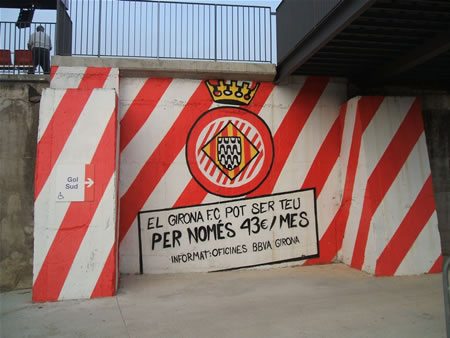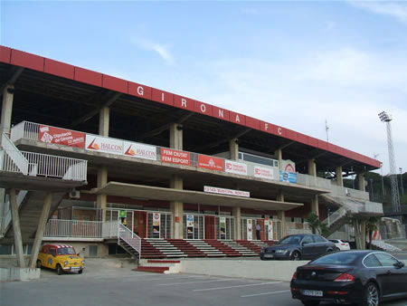 | スタジアムまでの道のり | 駅の前にある大通りのBarcelona通りをバルセロナ方向(駅を背にして右)に少し歩き同じく少し大きめのEmili Grahit通り で左に曲がります。しばらく歩くとロータリーに出ますので右方向のDoctor Lluis Pericot通りに曲がり、少しすると2またに道が分かれています。左側がMontilivi通りですのでその道をひたすらひたすら真っ直ぐ進むとスタジアムに着きます。スムーズに行ければ30分程度です。ジローナ駅から8番のバスに乗っても近くまでいけるようです。 |