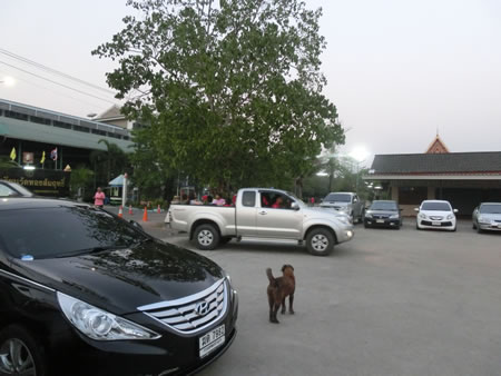 ■そして、案内されたのが上記の臨時駐車場スペース。隣に小さなお寺のようなものがあります。