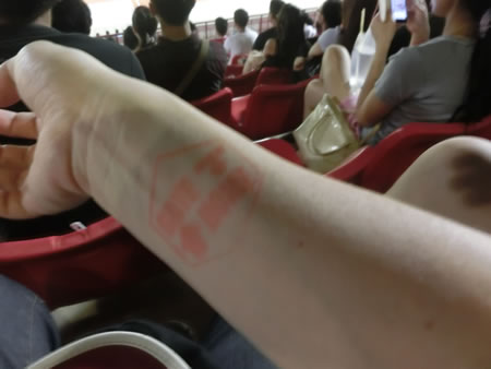 ■入場時に腕に、おそらく再入場用と思われるスタンプが押されます。