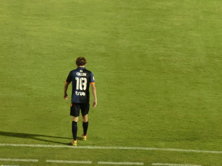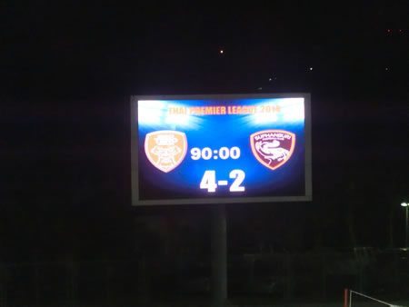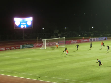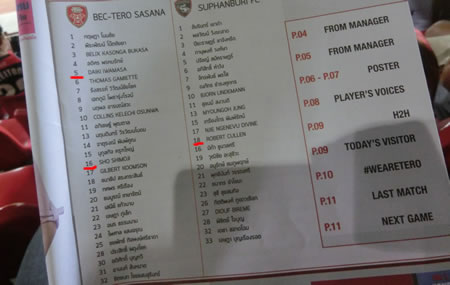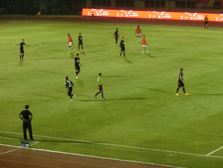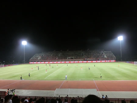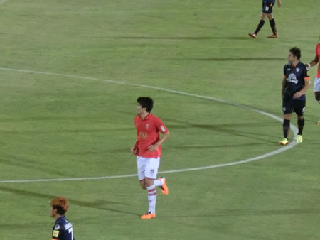 | 2014年3月9日に行われた、BECテロ・ササーナvsスパンブリーの試合を観戦しました。ご存知の方も多いと思いますが、2014シーズンからかなり多くの日本人選手、それも代表経験者など日本でも名前の知られている選手が多くタイプレミアリーグに加入しています。 そして、今回の対戦カードは、その中でも注目の岩政大樹(BECテロ・ササーナ)とカレン・ロバート(スパンブリー)の二人の新加入選手(カレン・ロバートは厳密には昨年からスパンブリーにいるが、リーグ戦に出場できるのは今シーズンから)と、BECテロ・ササーナで地位を築いている下地奨もいます。 それらの選手がどのようなプレーをこのリーグで見せるのか、そもそもタイプレミアリーグにおける日本人選手にはどのような要素が期待されているのかを伺う上でも楽しみな試合でした。 この試合は、岩政大樹とカレン・ロバートがスタメン出場で下地奨は、後半30分からの登場となりましたが、スタメン出場したカレン・ロバートがなかなかチームの中で連携が合わないで苦しんでいる様子がうかがえる中で、既に岩政大樹は、守備の要となっていて、安定感抜群でしたね。そして、下地奨は、短い時間の出場でしたが、チームから愛されている様子もスタンドからの歓声でわかりましたし、強烈な個を持った選手をうまく使いこなすようなパスセンスは、短い時間でも強く印象に残りました。 この試合の勝敗を決定づけた4点目のアシストは下地奨からでしたが、完全に自らでもゴールが奪える状況で、フォワードの選手に譲ってあげたというアシストでした。見事でした。 スタジアムは、昨シーズンにこけら落としという新しいスタジアムだけあって、綺麗でした。メインスタンドとバックスタンドのみでコアなファンは、バックスタンドでホームとアウェイに分かれてエリアが決まっています。 私たちは、しっかり試合が見たいので一番良い席でということで、メインスタンド(プログラム付き)のチケットを1人180バーツ(550円くらい)で購入しました。 何しろ、初めて見る会場、初めて見るチームの試合だったので、昨年の様子と比較することはできませんが、メインスタンドを眺めると、結構日本人の観客がいたように感じられます。まあ、私も完全にその中の一人ではあるのですが。 組織と言うよりも、攻撃的な選手の個が際立つような両チームの試合でしたが、点の取り合いになったこのカードは、かなり楽しませてもらいました。 試合後は、スタジアムから大通りに出るまでの道が狭いため、車の場合は大渋滞になります。もしかすると、タクシーで来て、帰りは大通りまで歩いてタクシーを拾うという方法の方が、スムーズに帰れるかもしれません。 | |
