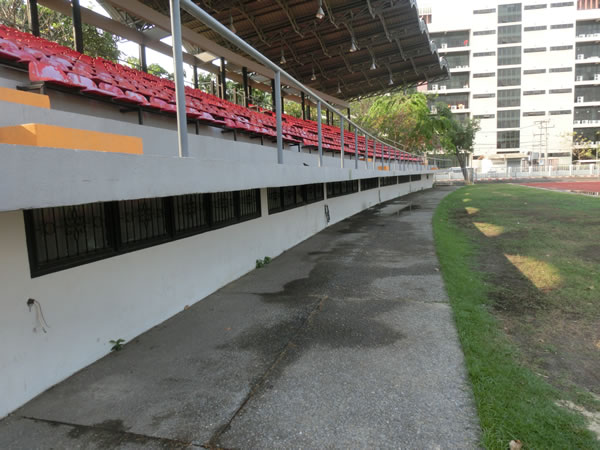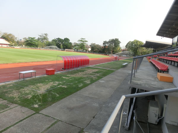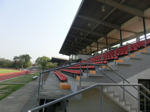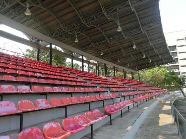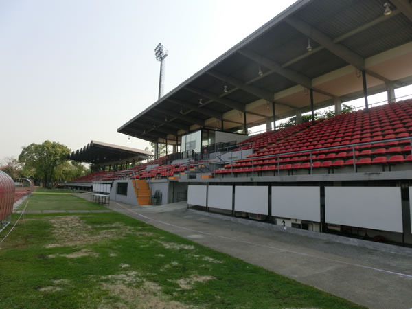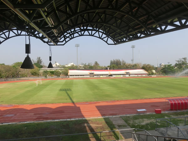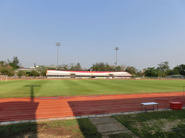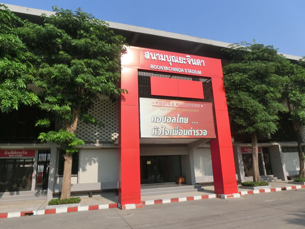 | スタジアムまでの道のり | バンコク中心から約20キロ、ドンムアン空港から8キロほどに位置するスタジアムです。このスタジアム名ピンポイントで探すと、周辺の方に聞いても、知らない率がかなり高いので注意。バンコク中心地からの場合、ドンムアン空港へ向かう道の右側にある、Royal Thai Police Sports Clubの敷地内にボーニャチンダ・スタジアムは、あります。 |