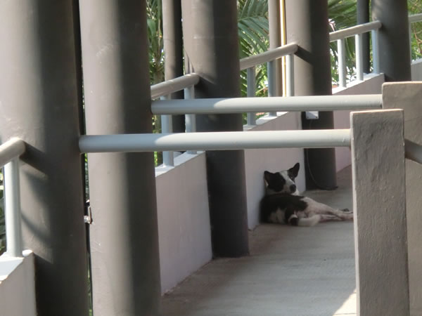 ■メインスタンド上部で視線を感じたので見てみると、犬がすごくこちらを見ていました。試合のない日は、俺様のものらしいです。侵入してすみませんw