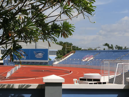 ■バスケットコートがあり、その向こうにチョンブリースタジアムが見えます。