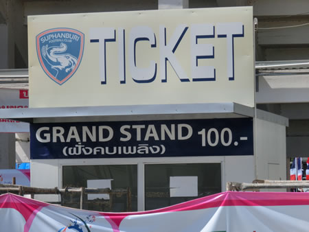 ■ちょっと、幕で隠れていたりしますが、チケット売り場。グランドスタンドは100バーツのようですね。