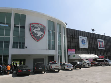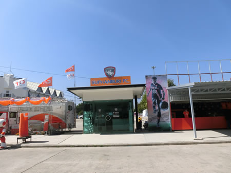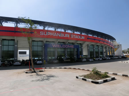 | スタジアムまでの道のり | バンコク市内からの距離は、110~120キロくらい。バス利用(バンコクの北バス・ターミナルと南バス・ターミナルのいずれかから出ている)した場合は、2時間程度の所要となります。スパンブリーのバスターミナルの場所が正確にわからないのですが、Supamit Hospitalという場所の近くのようで、そこからスタジアムまでは5キロほどの距離があるようです。