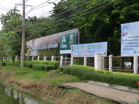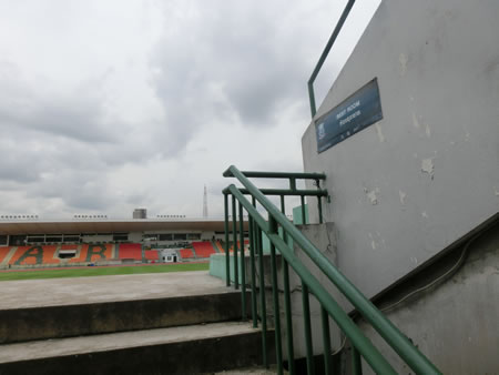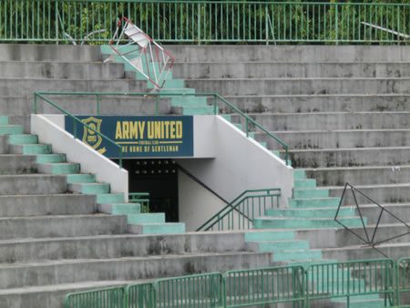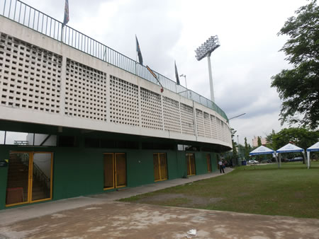 | 2013年7月にスタジアム訪問しました。なんというか、誤算というか、ありがちというか、今回のタイ訪問の旅程の中で基本的に週末のみリーグ戦が開催されるタイサッカーなので、週末は国内で用事があることがほとんどのために足を運びにくいブクメとしては、運よくタイFAカップがこの水曜日開催ということで、当初アーミー・ユナイテッドvsバンコクFCの試合がこの、タイ・アーミー・スポーツ・スタジアムで開催されると、ネットで調べていたら分かり、このスタジアムは、試合観戦と同時に訪問と言う形を取れると計算していたら・・・開催する会場は、バンコクFCのバン・モットスタジアムでしたwそのため、試合当日の7月10日の昼間に、ここにはスタジアム訪問のみということになりました。9日に訪問した、タイ・ジャパニーズ・スタジアムの前の道を、更に北に3キロほど進んだところにあるスタジアムになります。