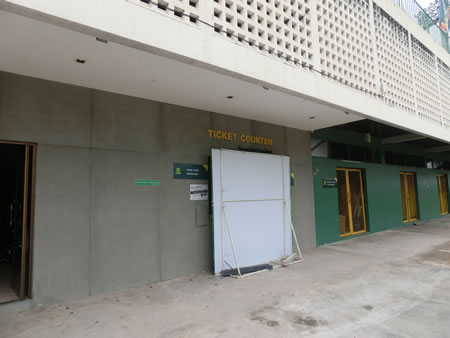 ブクメは、Sanam Pao BTS周辺のホテルに滞在していたため、駅前の道からタクシーに乗り15分ほどで到着しました。 スタジアム周辺に警官が多く、さすが軍隊の・・・(実際は良く知らないw)と思っていたら、大通りで交通取り締まりを強化してたまたまその辺でやっていただけということでしたw | |