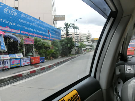 ■屋台を別角度から。奥の方にピンク色の車体(タクシー)が見えると思いますが、この付近もタクシーを拾うのは簡単です。