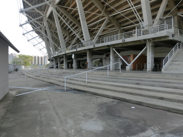 | 2015年3月7日にスタジアムを訪問しました。 2014シーズンに、タイプレミアリーグのBECテロ・ササーナで17得点をあげ、日本人で最多得点を挙げた下地奨が、2015シーズンより2部のポリス・ユナイテッドに移籍したということで、ホームゲームでプレーを見たいと思っていたら、週末、ミッドウィークと試合のある週にもかかわらず、ポリス・ユナイテッドのホームゲームがなかった(最初に調べた時には、あったと思っていたのだが・・・)ため、とりあえず、ホームスタジアムをチェックしておこうということで足を運びました。 しかしながら、情報がややこんがらがっていて、基本的に、このタンマサートスタジアムがポリス・ユナイテッドのホームであって、スタジアムもいたるところにポリス・ユナイテッドのホームとわかる装飾などあるのですが、今シーズンのホームゲームは、ドンムアン空港の南側に位置する、ロイヤル・タイ・ポリス・スポーツクラブの敷地内にある、ボーニャチンダ・スタジアム(Boonyachinda Stadium)で開催されるという表記があるページもあり、直近直後の公式戦でホームゲームとして開催のものがなく、直前のトレーニングマッチでは、ボーニャチンダ・スタジアムを利用していたと公式facebookで表記されているのですが、不明です。いずれにせよ、足を運ぶ方は、ポリス・ユナイテッドの公式facebookに試合の前に開催場所も表示されるので、そこでチェックしてくださいね。 今回、混乱した理由がもう一つありまして、3/8の試合で同じ2部リーグのアユタヤFCがアントーンFCとのダービーマッチで、ホームとしてタンマサートスタジアムを使用したことで、足を運んだ時には、アユタヤFCのチケットボックスもあったりでしたので。アユタヤFCが、今シーズンここをホームとして使い続けることはないとは、思いますが、色々混乱ポイントの多い訪問でした。スタジアム自体は、大学敷地内の一番奥の方にあります。広大な敷地を持つ大学です。スタジアムも大学内で25000人収容できるのですからすごいですよね。敷地内の表記としては、main stadiumという表記が、このスタジアムになります。プール用のスタジアムだったり、パッと見でこのスタジアムと勘違いする外観の建物がポツポツ近くにありますので注意しましょう(間違えて最初は、プールの方に足を運んでしまいましたw) | |