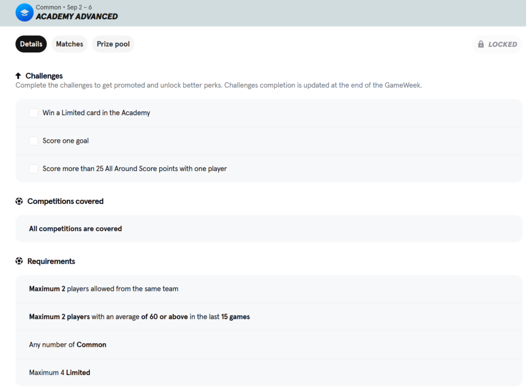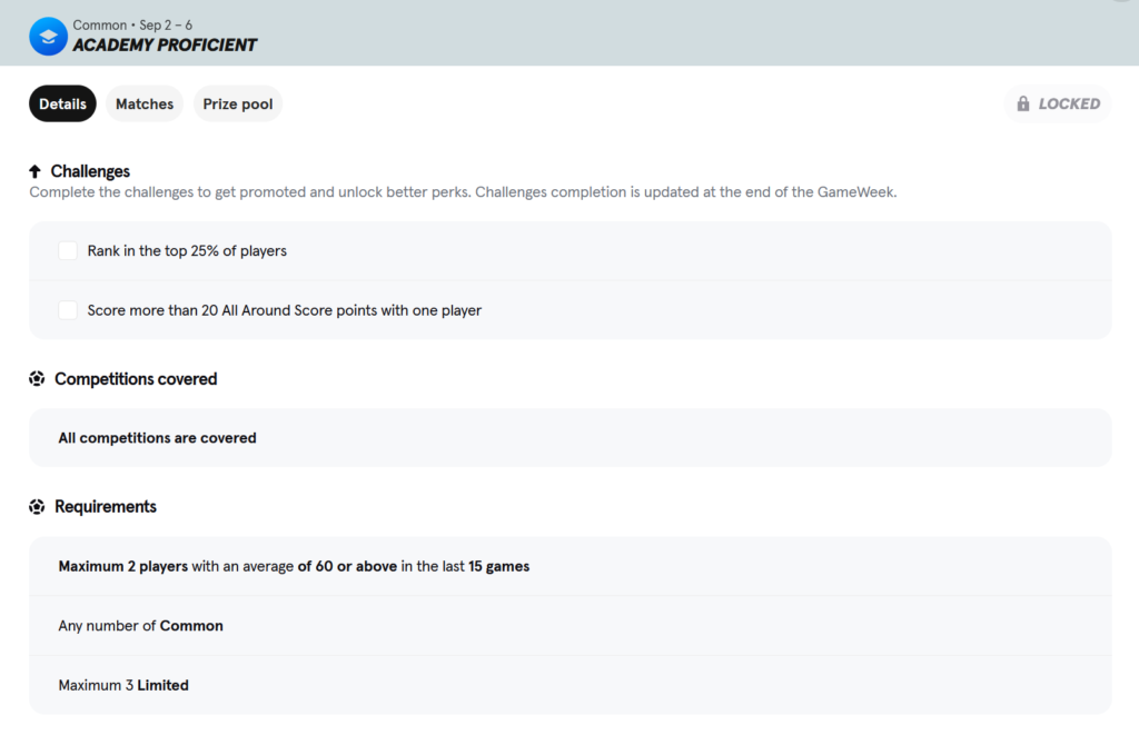 ほかのコンペティションは、例えば毎試合ゴールを決めるようなスター選手や、ほとんど失点をしない強豪チームのディフェンダーやゴールキーパー、カード自体のレベルが高めかつボーナス率が高い猛者たちと競争することになるため、上位入りはかなり難しいです。