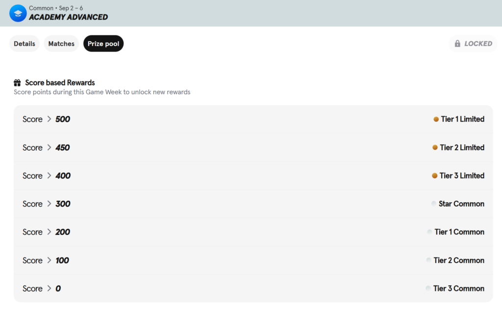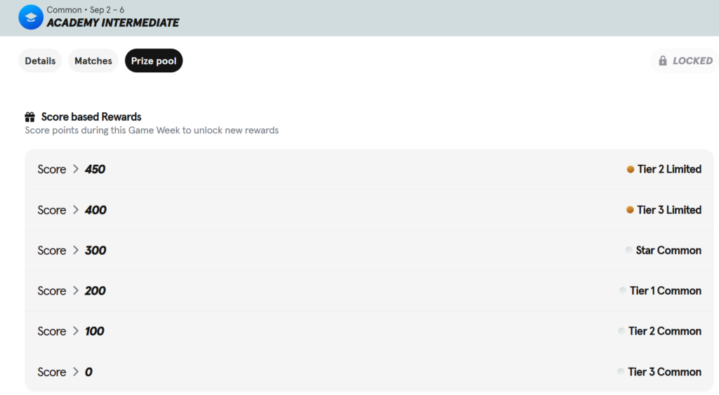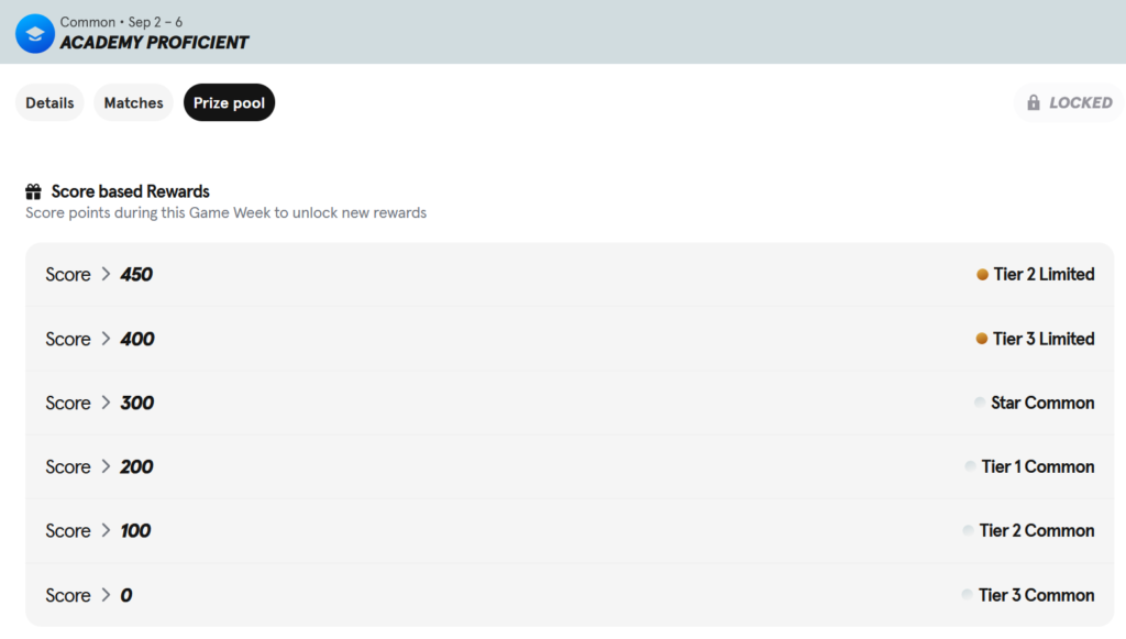 Sorareでは、レアのカードで参加できるコンペの1つに、一定のスコアを取れば賞金がもらえるタイプのものがあります。
