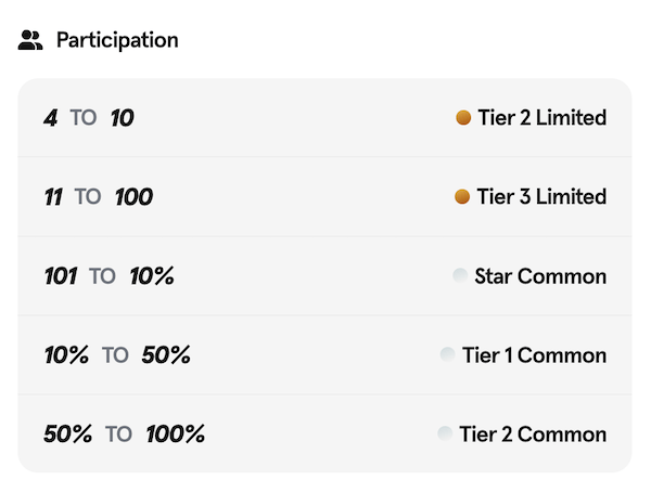 なお、この報酬の画面では、カードのところにTier1、Tier2(ティア1、ティア2)といった表記がありますよね。