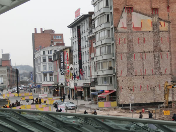 リエージュ・ギユマン駅に到着。この日の宿は、駅から見える上記の写真のCASINO GAMESと言う看板の横にある旗がたくさんあるところです。Hotel Husa De La Couronne Liegeというホテルです。ウサホテルグループですが、フランス語なので読み方は良くわかりません。
