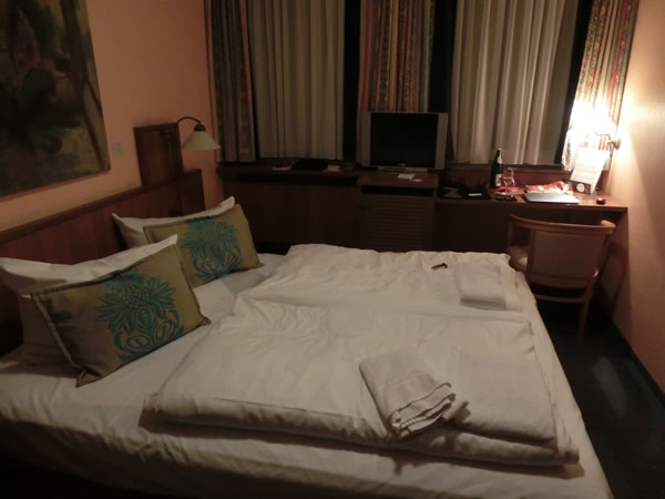 booking.comで予約したこの日の宿は、Dom Hotel Am Romerbrunnenになります。ちょっと驚きの宿でした。宿の情報に、果物を自由に食べて良いとあり、無料でミネラルウォーターとありましたが、ミネラルウォーターは炭酸でした。海外ではおなじみの炭酸のミネラルウォーターこれも、慣れると炭酸ジュースを飲んでいるような感覚で悪くないものです。