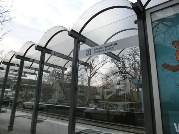 ヨハンナ・ティシュ・プラッツ(Johanna-Tesch-Platz)駅です。スタジアム名の表記もあります。