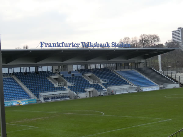 メインスタンドFrankfurter Volksbank Stadionの文字。