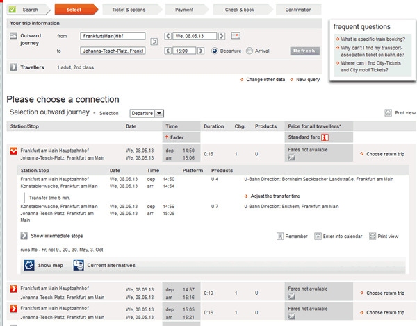フランクフルト中央駅へ戻ります。