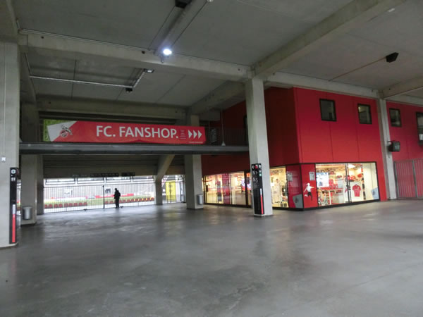 1.FCケルンのスタジアムは、試合のない時でも内部に入ることができ、ファンショップもスタジアム内部にあります。海外のサッカークラブの中には、試合かスタジアムツアーに参加しないと内部の様子が分からないというクラブチームも多いですが、このように試合が無い時でも内部の様子が見られるというのは、あまり時間がないもののスタジアムの内部の様子が見たいという私のようなタイプの旅行者には、すごく親切に感じます。