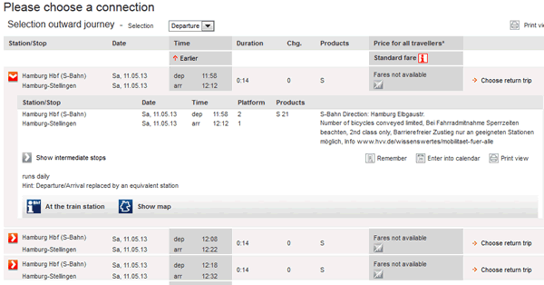 イムテック・アレーナの最寄駅は、シュテリンゲン(Stelingen)という駅になります。bahn.comで検索する場合は、Hamburg-Stelingenと入力しないと似た名前が多く出て紛らわしくなります。