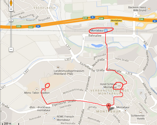 凄く大まかですが、上記の地図のように、今回のモンタバウアー滞在では、モンタバウアー駅からSchloss Montabaurというホテル、そして、ケラミックカップの会場への移動という3点を動く流れになりました。