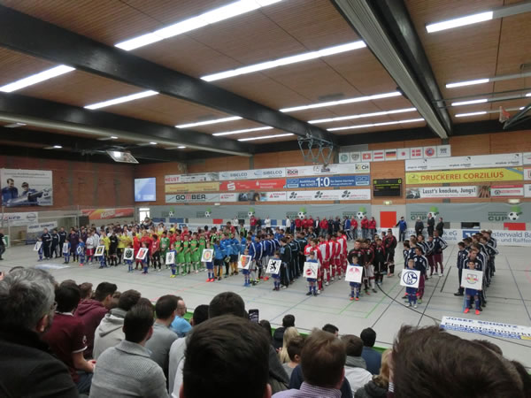 ケラミックカップの出場チームの入場場面です。日本からは、浦和レッズユースがチームジャパンとして参加しました。