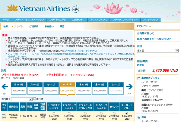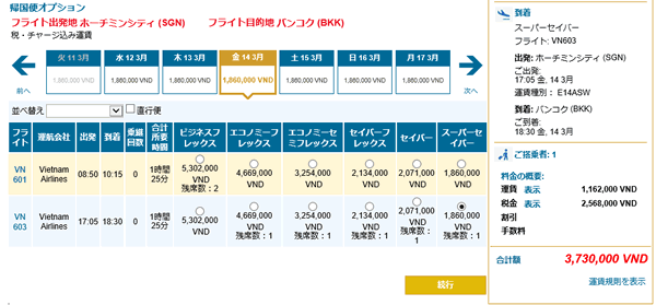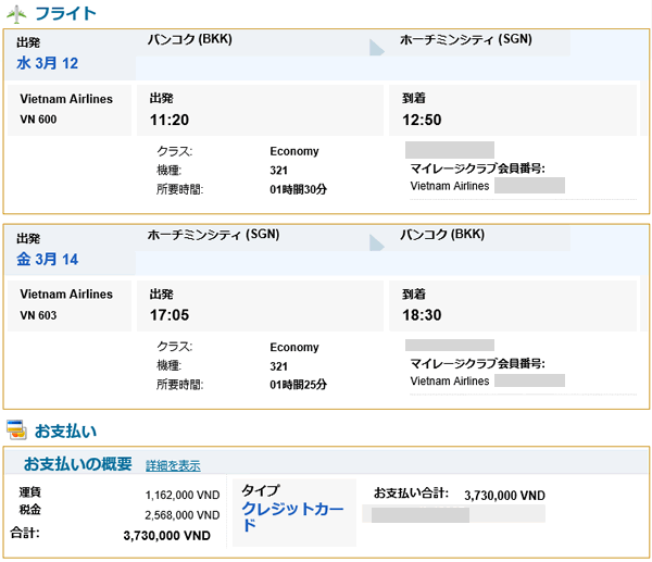 あとは、バンコク~ホーチミンの往復移動ですが、この区間はベトナム航空を利用します。